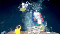 Em um determinado momento, algumas horas antes de virar, um pequeno barco inflável escorregou da popa (parte traseira) do Sea Story. Um passageiro filmou enquanto a tripulação lutava para trazê-lo de volta — o oceanógrafo com quem a BBC conversou disse que o vídeo mostra condições que não eram incomuns, e consistentes com ondas de 1,5 metro.
