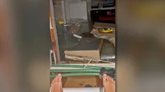 Um vídeo que ela conseguiu filmar brevemente usando a luz do seu celular, agora compartilhado com a BBC, mostra o local em que ela achou que sua vida poderia acabar — e como a água do mar e os detritos flutuantes impediram que ela escapasse.